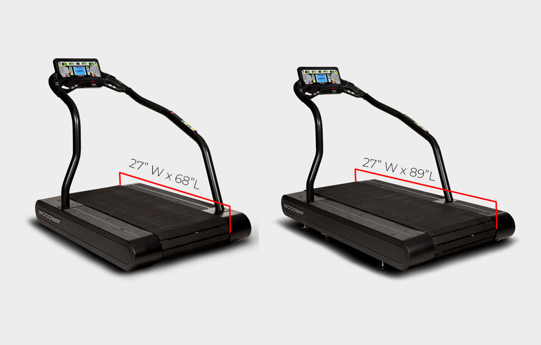 ![Pro [Woodway] Duas passadeiras eléctricas pretas com ecrãs digitais, largura 27 polegadas, comprimentos 68 e 89 polegadas.](https://cdn-shopkit.com/usercontent/tuningyourrunning/media/images/264a46b-114705-proxlcomparison.jpg)