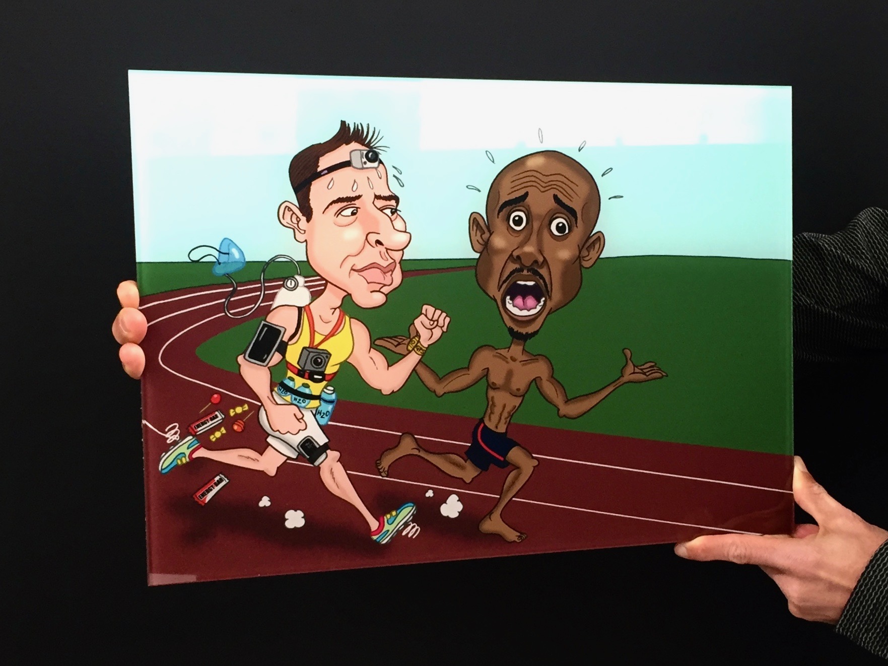 Cartoon de Adão Silva, brincando com uma tendência atual de se dar valor a tanta coisa e a esquecer-se o mais importante: o treino! Este cartoon consta do capítulo Fun Run, desenvolvido para a edição nº 4 da revista INSIDE Running as a Lifestyle. Impressão de elevada qualidade em vidro laminado com espessura de 8mm e suporte de parede. Dimensões de 420x297mm.